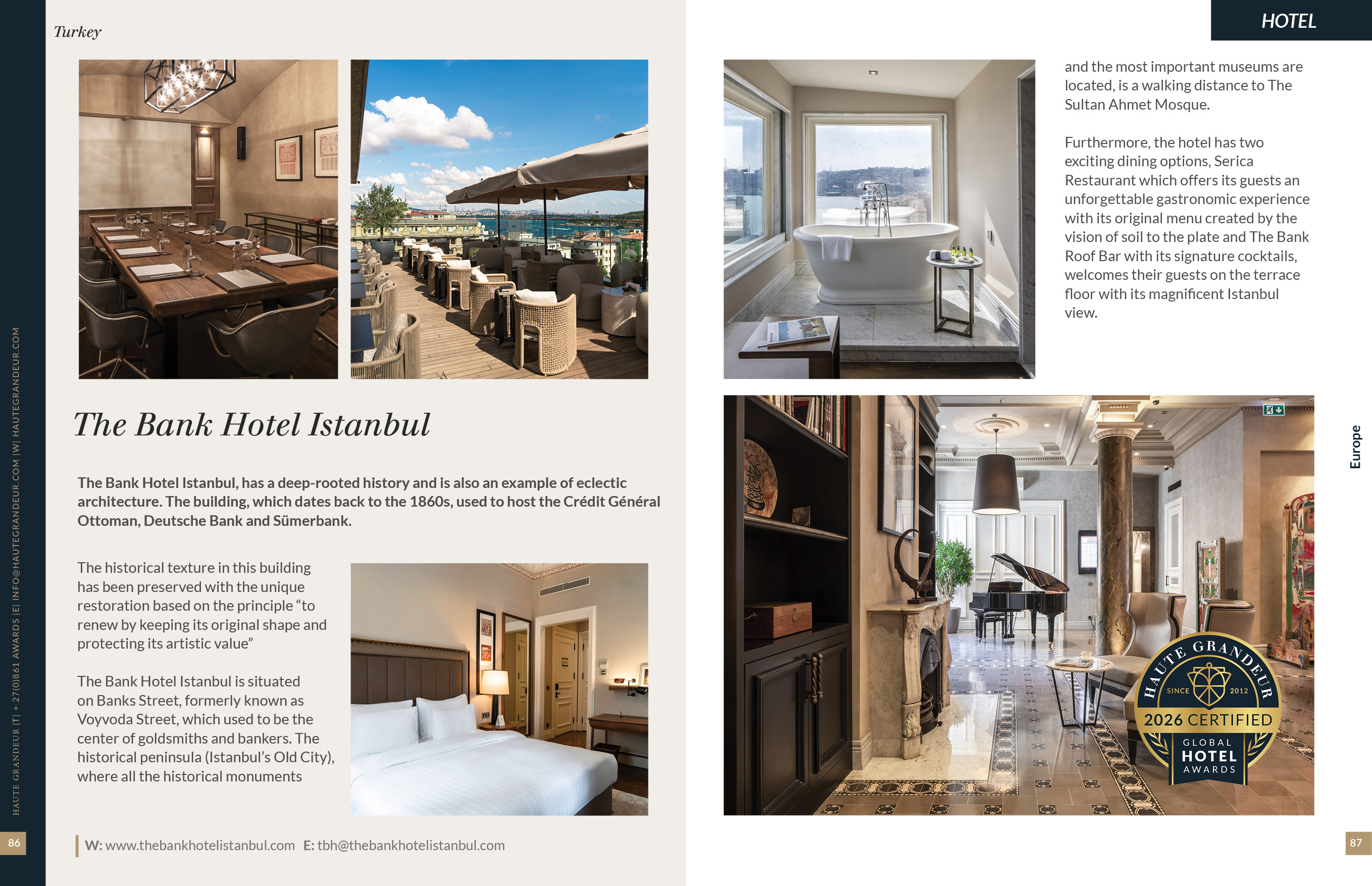 The Bank Hotel Istanbul Haute Grandeur October Issue